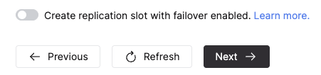 Если источник настроен соответствующим образом, слот сохраняется после переключения на реплику Read/Postgres, обеспечивая непрерывную репликацию данных. Узнайте больше здесь.